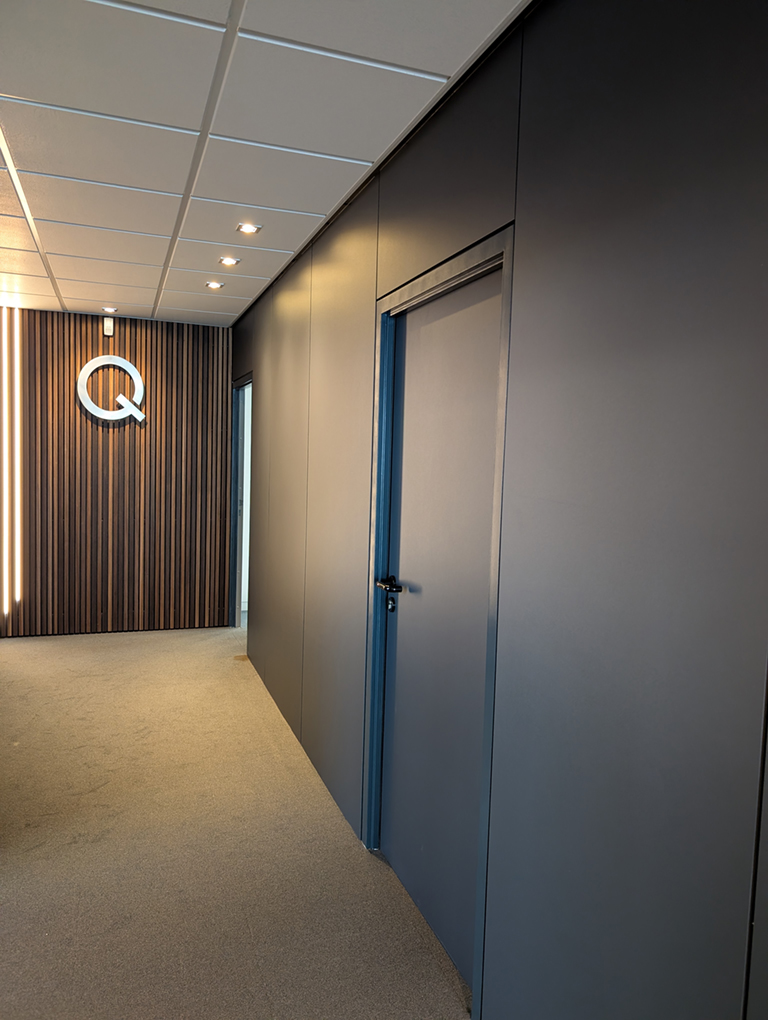 Voor Q-railing Emmerich hebben we de de gang voorzien van een interieurfolie. De oude lichtgrijze wanden en deuren zijn voorzien van een nieuwe folie. Hier hebben we gebruik gemaakt van Bodaq Interieurfolie. Dit is een vinylfolie die gebruikt wordt om verouderd interieur te renoveren en het uiterlijk ervan te verbeteren. De folie is verkrijgbaar in een breed scala aan patronen, kleuren en texturen, waardoor unieke en visueel aantrekkelijke ruimtes gecreëerd kunnen worden.