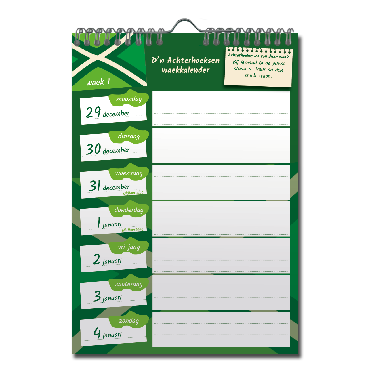 Een originele Achterhoekse weekkalender A5 met elke week weer een nieuwe Achterhoekse les!