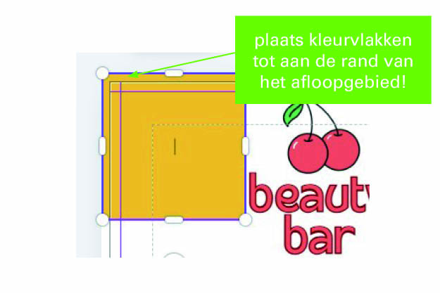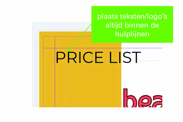 Plaats teksten, logo’s of afbeeldingen die je geheel wilt tonen altijd binnen de hulplijnen zoals op het plaatje te zien is.